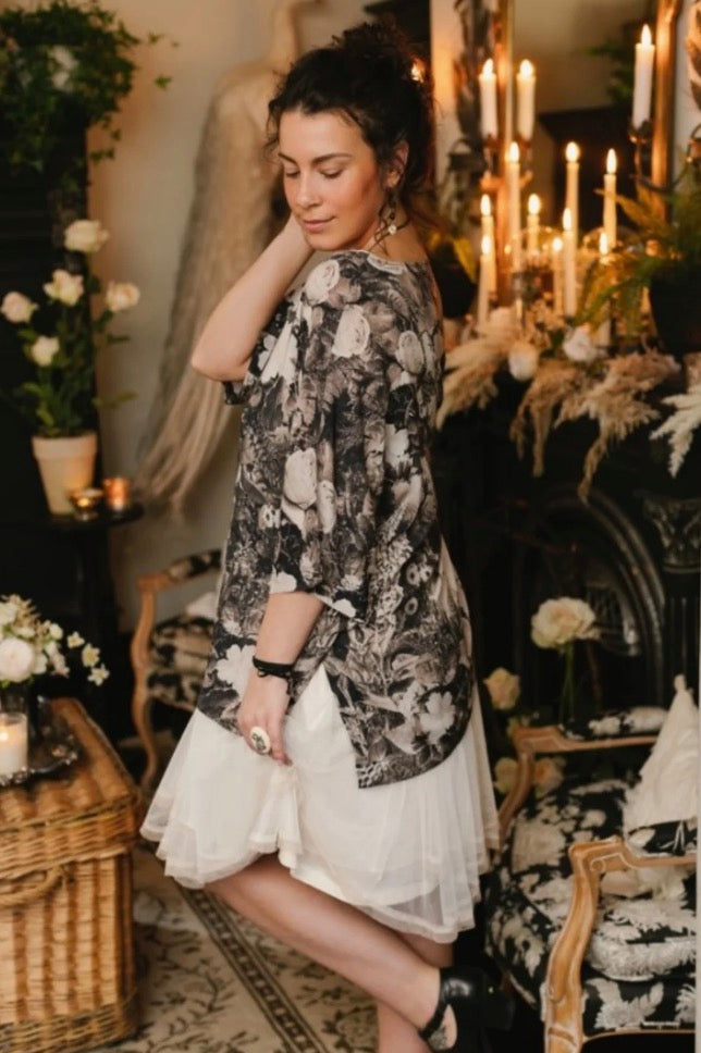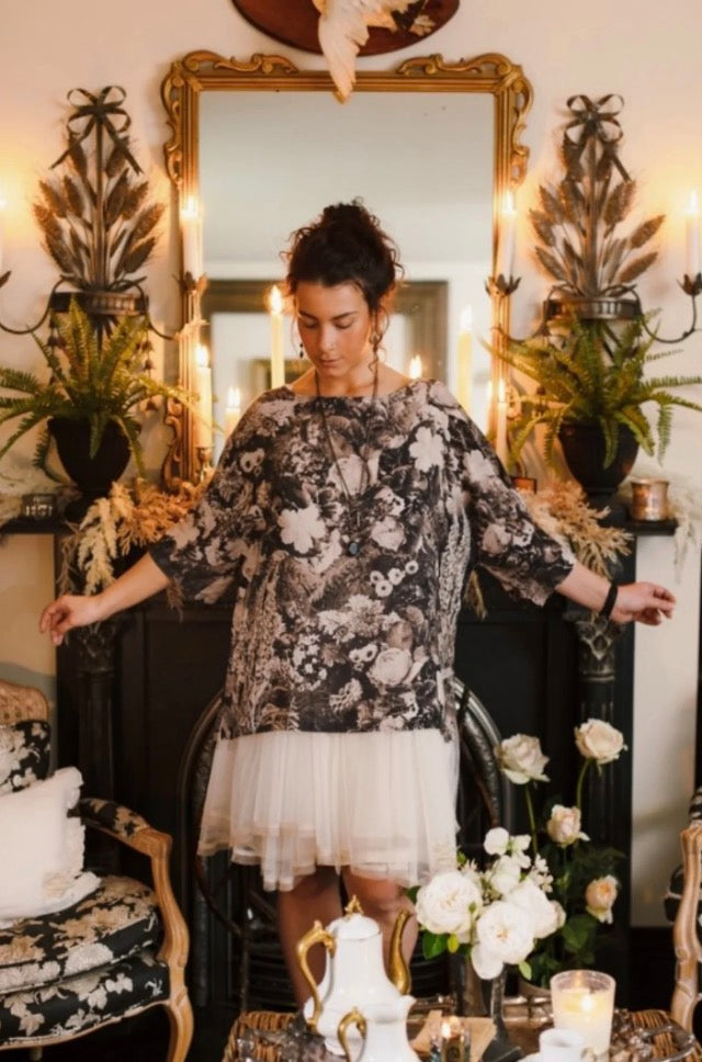 Crafted from the same soft bamboo fabric as the stardusters, these tees feature a gracefully wide scoop neck, seamlessly relaxed sleeves, side slits, and hem detailing adorned with a hidden contrast print. Tailored in two sizes to embrace diverse body types, our S/M caters to sizes 2-10 with a slightly shorter cut, while the L/XL offers extra length for sizes 10-14.