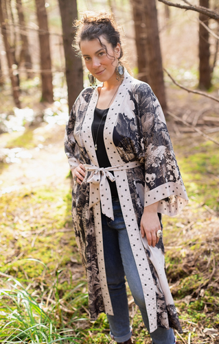 Kimono measurements: length 116cm, width 78 cm (across back, underarm to underarm). Model is 5’9” for reference.