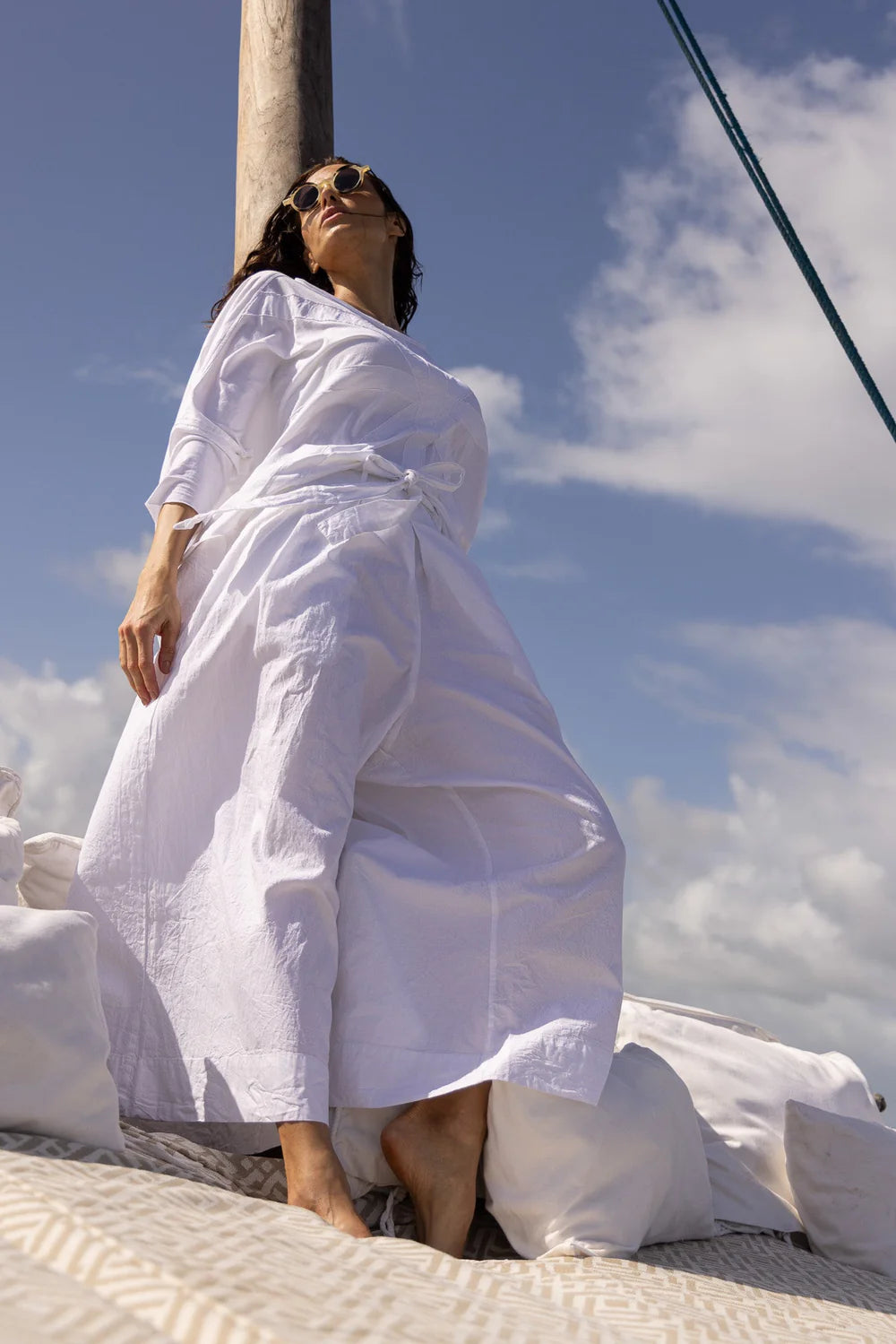 Our Harriet trousers are crafted from 100% medium weight cotton poplin They feature a wide-leg design and two spacious pockets. The waistband includes a poplin belt and is elasticised at the back. The cut offers the flexibility to be worn either low or high waisted.