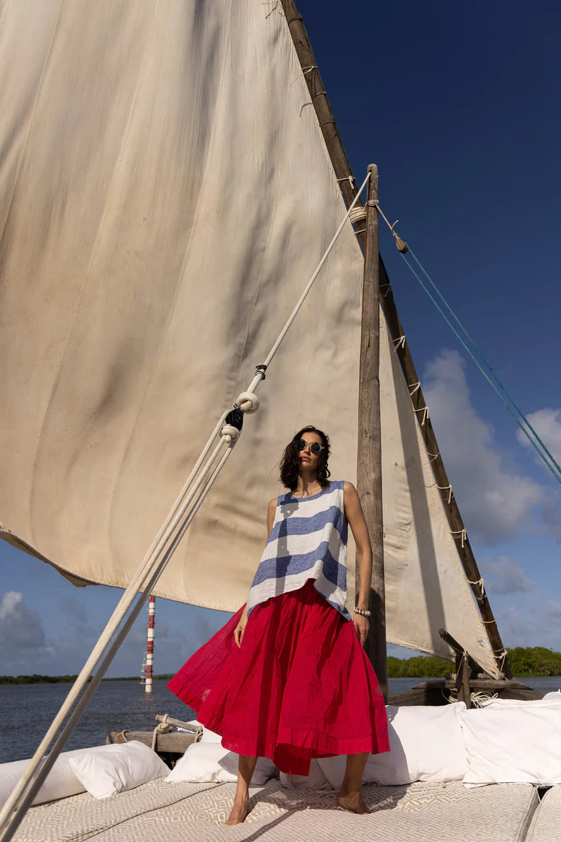 Our New Nyx Tutu Skirt is a modified version of our much loved and classic Tutu Slip, featuring a textured organdy fabric layer over a cotton poplin lining. This design includes a wide, secure elasticised waistband, providing an easy fit and easy styling options. The skirt maintains a structured silhouette while allowing for versatile styling, suitable for a range of occasions from casual wear to black-tie events.