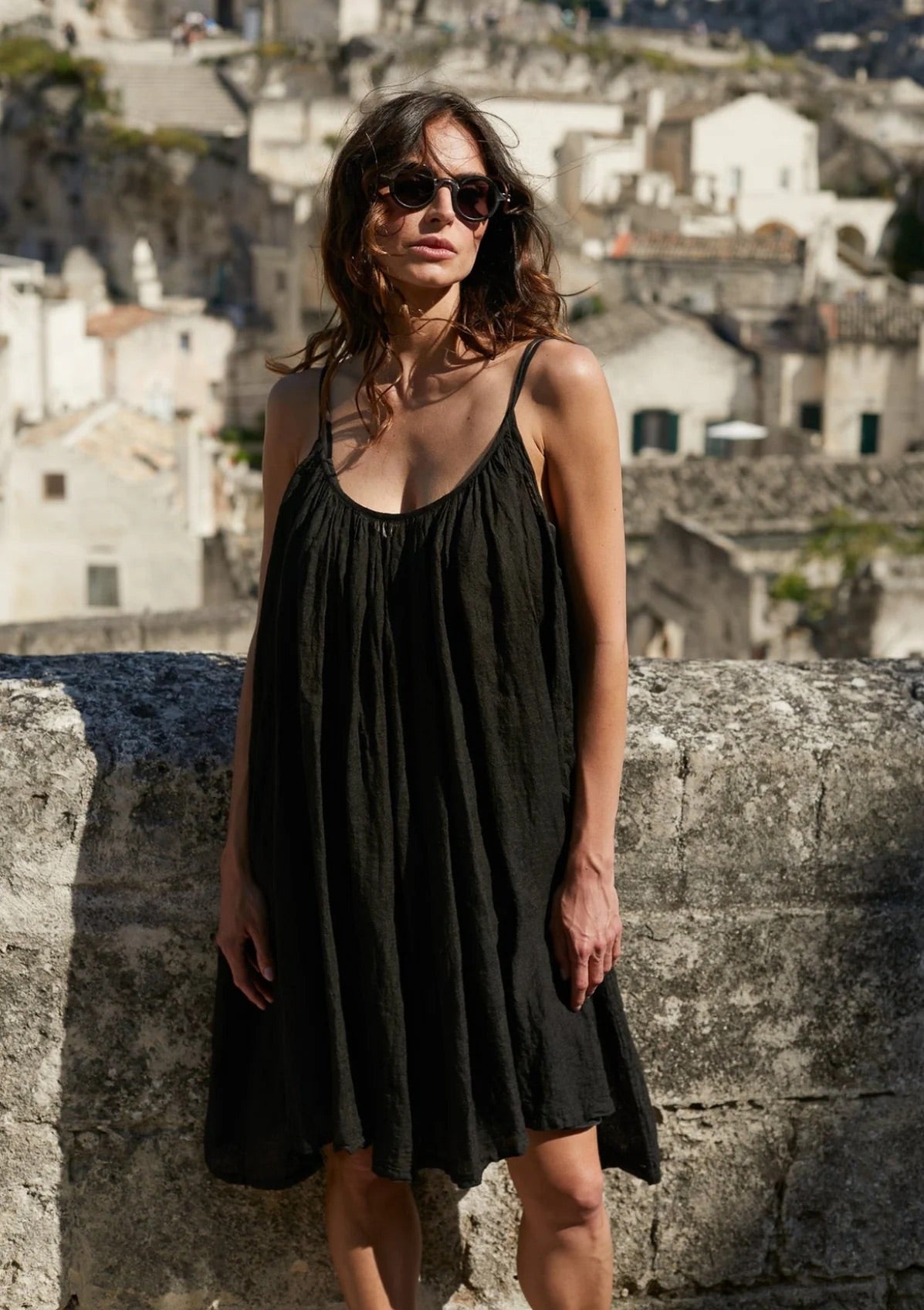 The Stefania dress is made from a beautifully lightweight gauze linen material with a delicate ruching along the neckline.