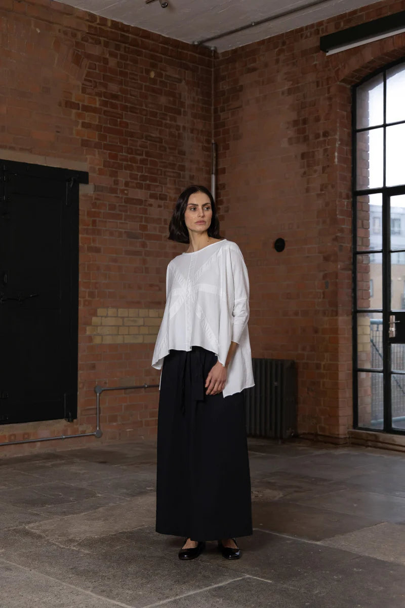 Our Union Tee is an old classic of ours that we've reimagined for this season. Crafted from soft, high-quality cotton, it features the iconic Union Jack sewn into the front bodice. With a wide neckline and flattering batwing sleeves that create a balanced, flowing silhouette.
