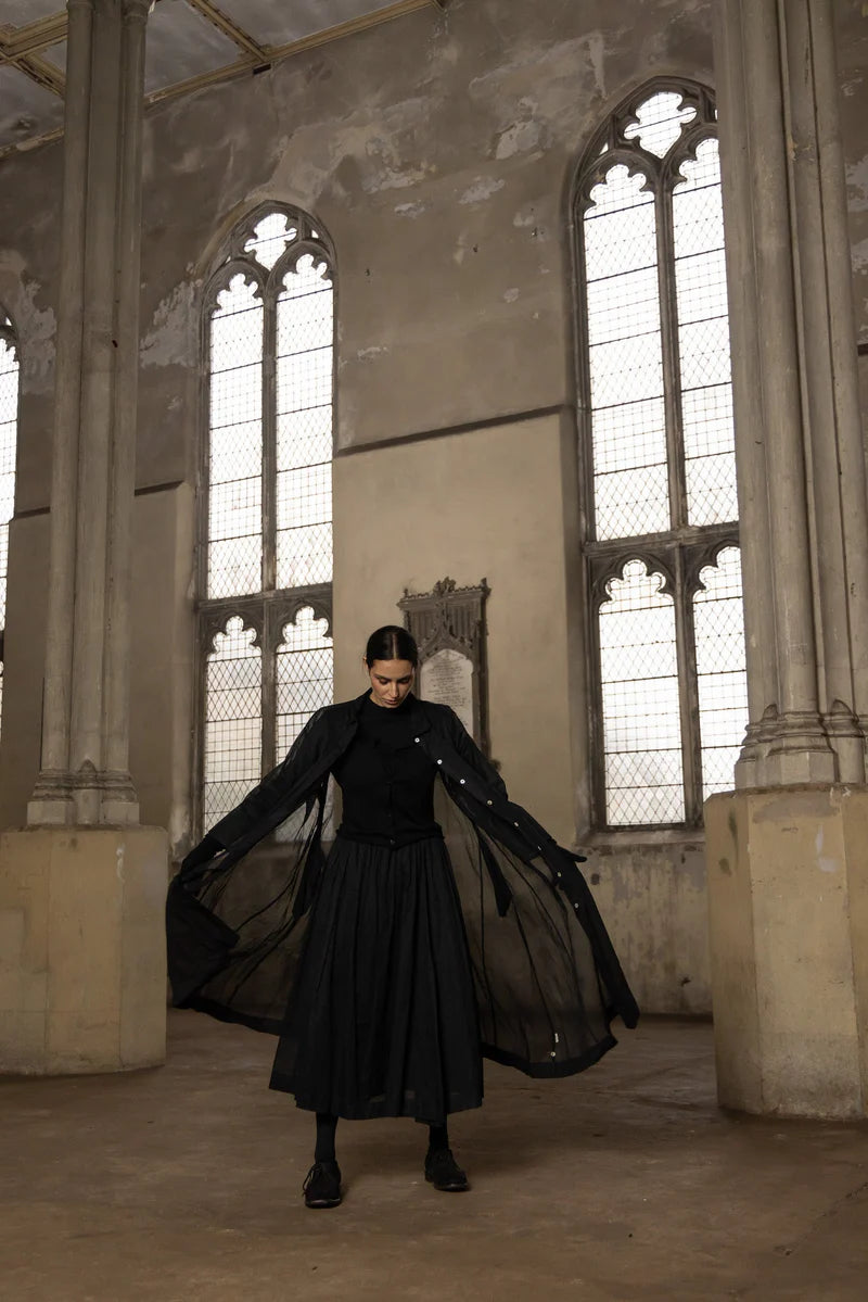 The Minerva Jacket is crafted from our signature cotton organdy fabric and designed with an oversized A-line silhouette. It features our distinctive agoya shell buttons and a timeless collar. Minerva is the ideal piece for layering over any of our styles, adding both texture and depth to any outfit.