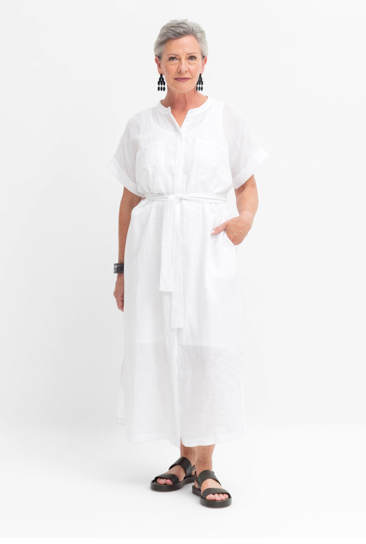 A simple, classic French linen shirt dress style that offers great versatility. We love wearing this button through piece as a dress over the accompanying slip.