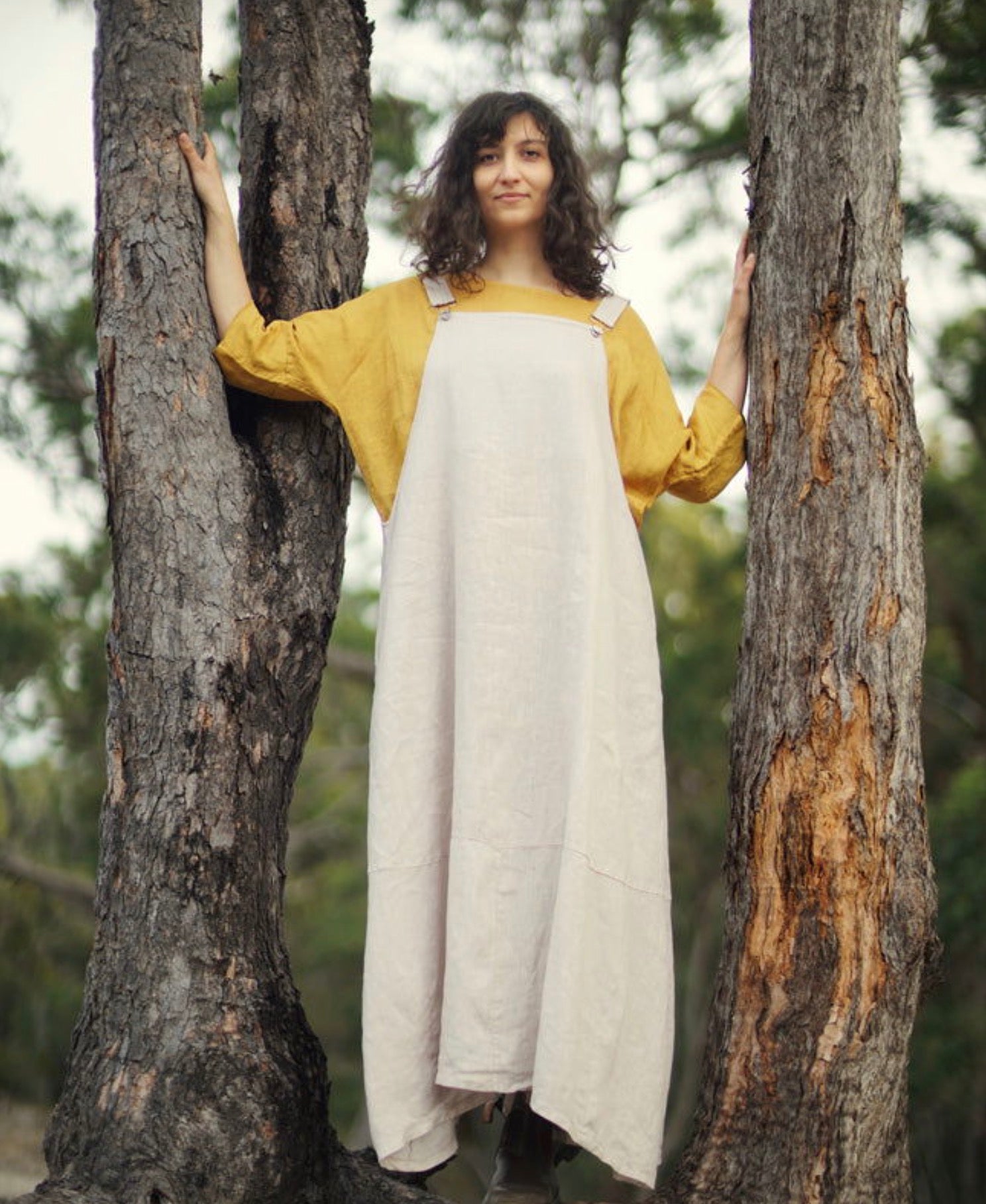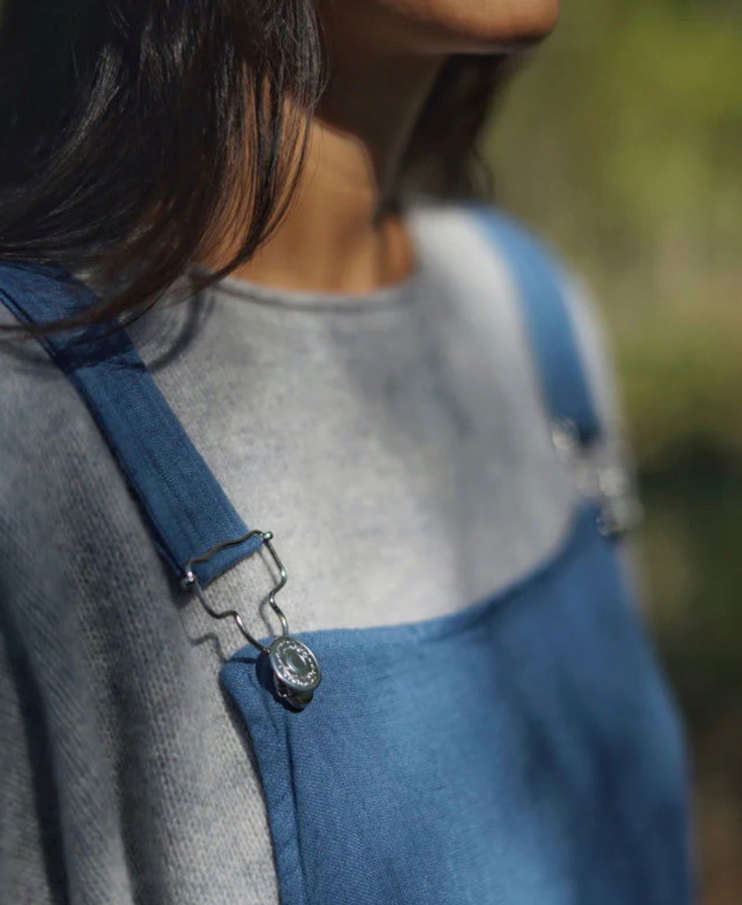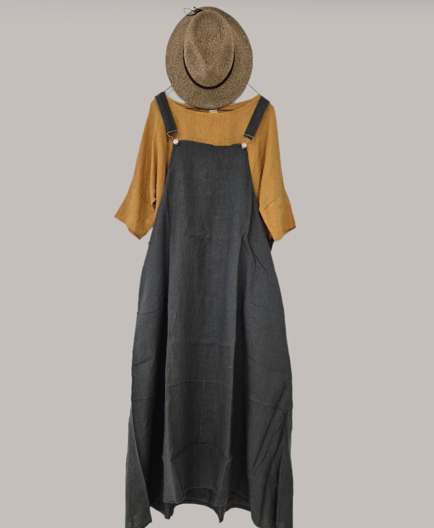 A fresh twist on the dungaree trend, our popular linen maxi dress is super fun to wear, and comfortable too. A relaxed fit, we pair it with a classic white tee - or striped - and our favourite Bensimons, and we're out the door.