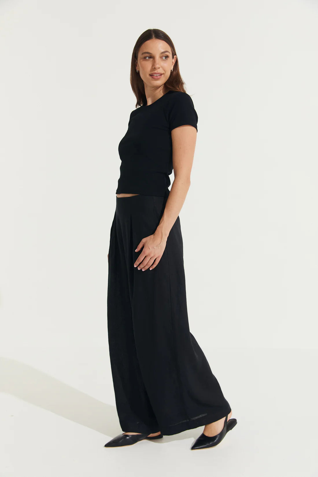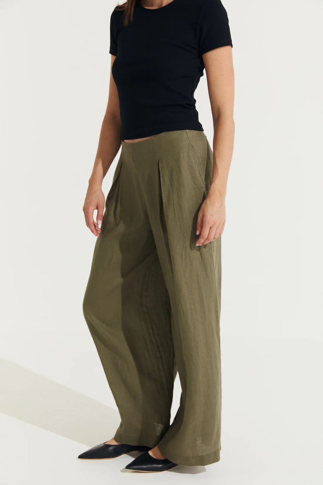Montaigne Charlotte Pleated Wide Leg Linen Pants