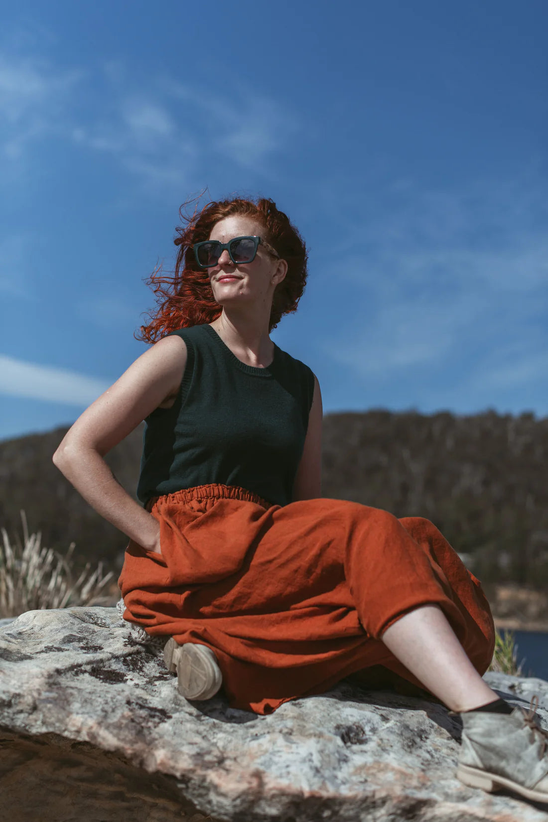 This 100% lambswool knitted vest combines warmth and style with a. modern shape and regular fit—a little bit loose, just perfectly sized to wear on its own or over a classic shirt. Featuring a round neckline and ribbed finishes at the neck, hem, and armholes, this sleeveless vest is designed for versatility. Ideal for layering over dresses or tops, or wearing solo as a cosy, stylish top, it’s the perfect piece to elevate your wardrobe year-round. Soft, refined, and timeless.