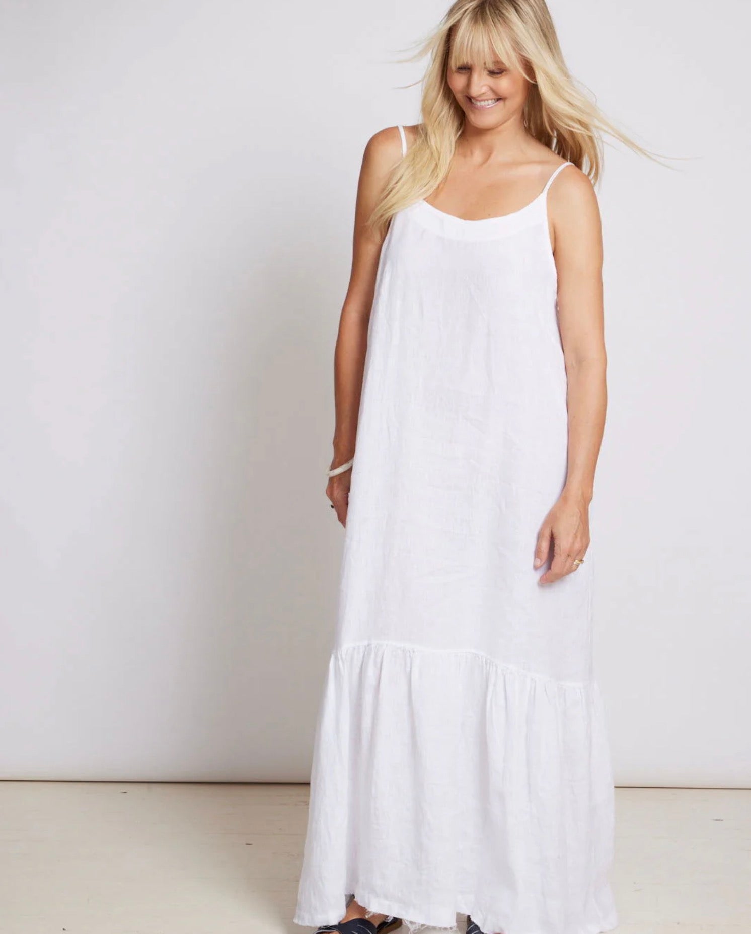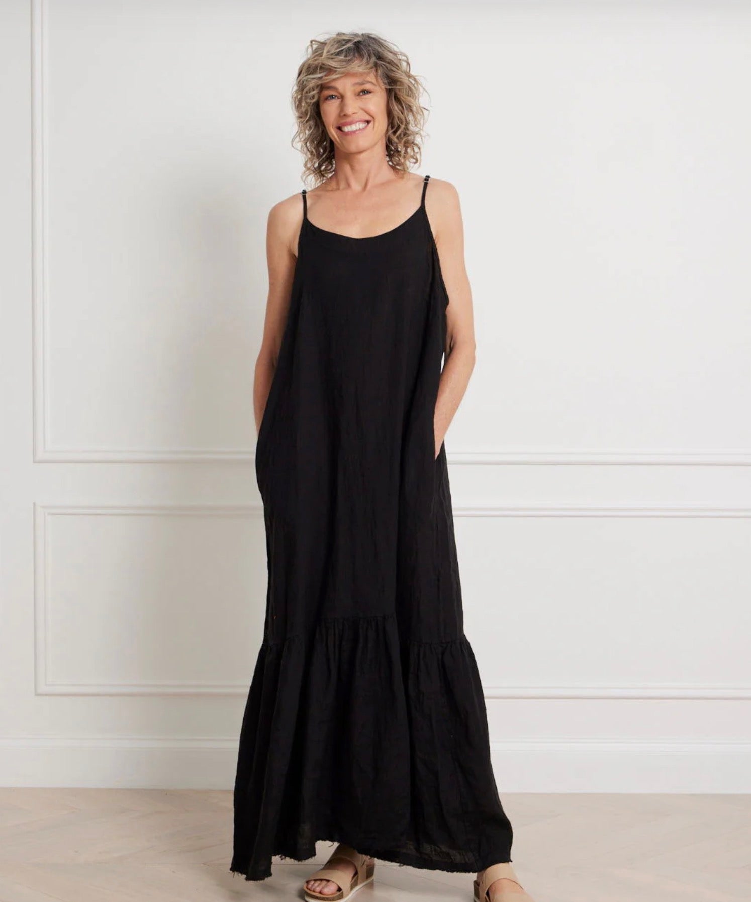 Made from naturally airy European linen, our Longline linen maxi dress features a frayed edge, adjustable singlet straps and side pockets. With a carefree spirit, this dress teams perfectly with espadrilles, a chunky sandal or white sneakers and an oversized tote. Throw on some bangles and you're out the door looking like you just came back from Lake Como.