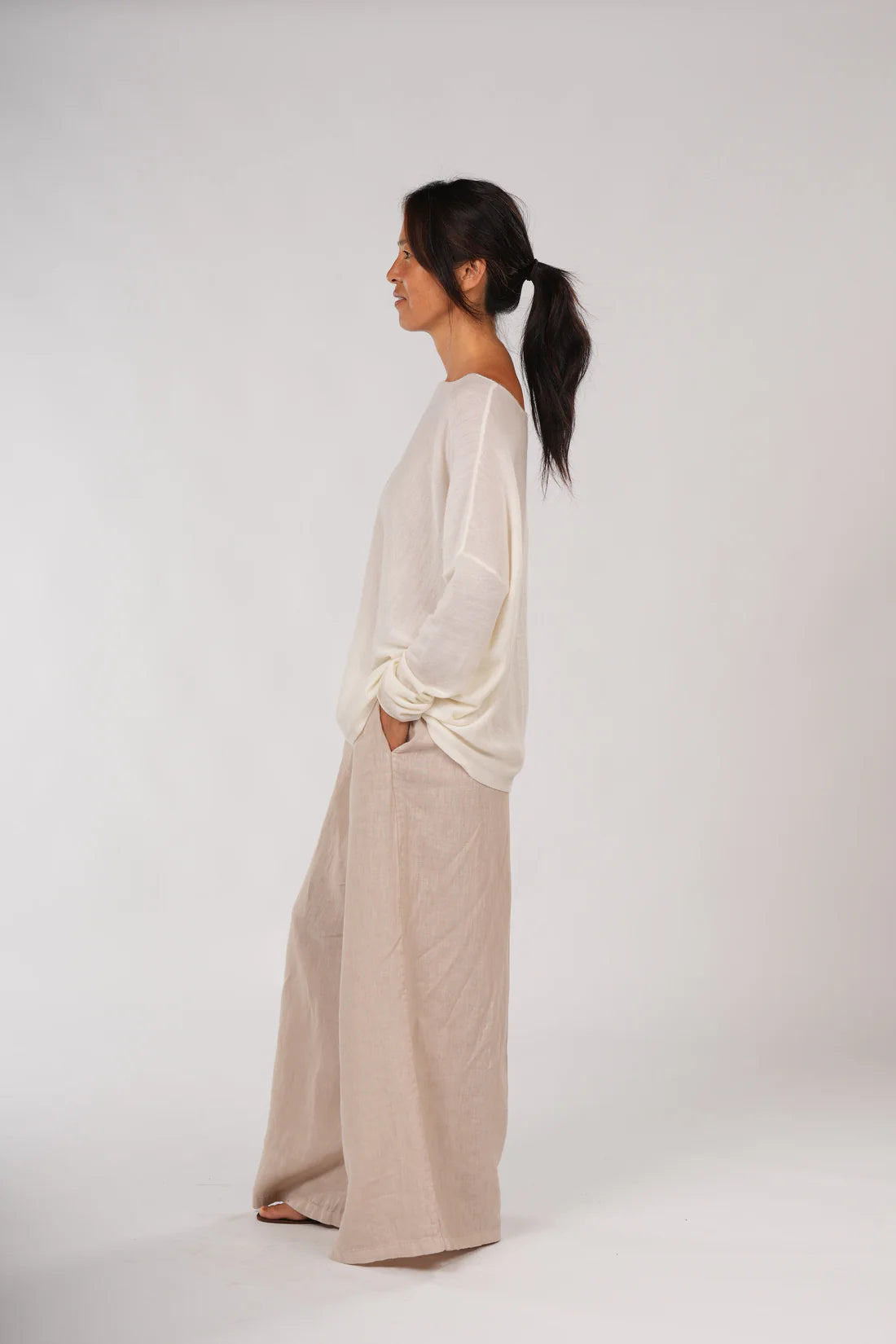 This superfine Australian Merino knit is the perfect blend of luxury and versatility. With its soft, breathable feel and relaxed fit, it’s designed to be worn year-round—layer it in winter or enjoy its lightweight comfort in the warmer months. Featuring a stylish boat neck and long sleeves, this top offers both elegance and ease. Remember, it’s best folded for storage to maintain its shape and softness. A timeless piece that’s as functional as it is luxurious.