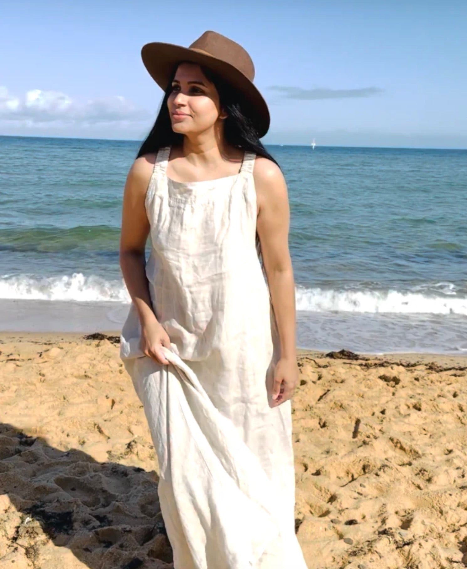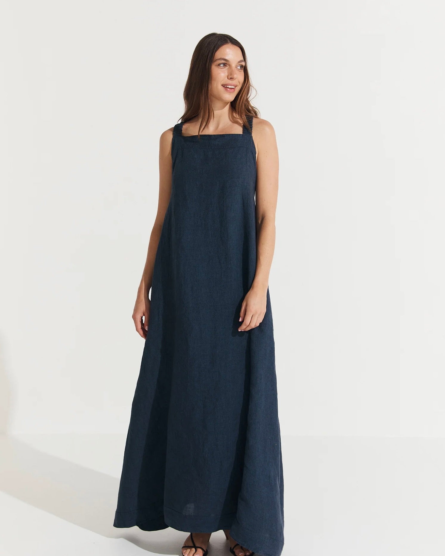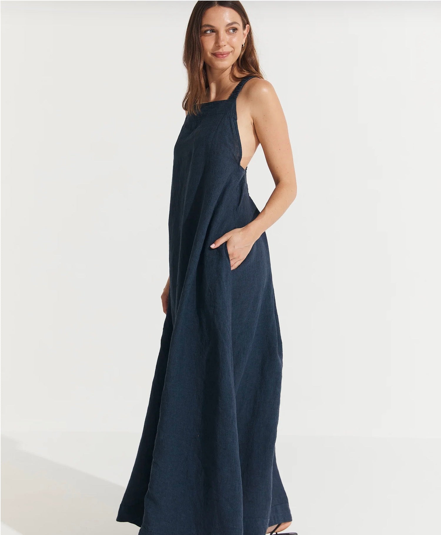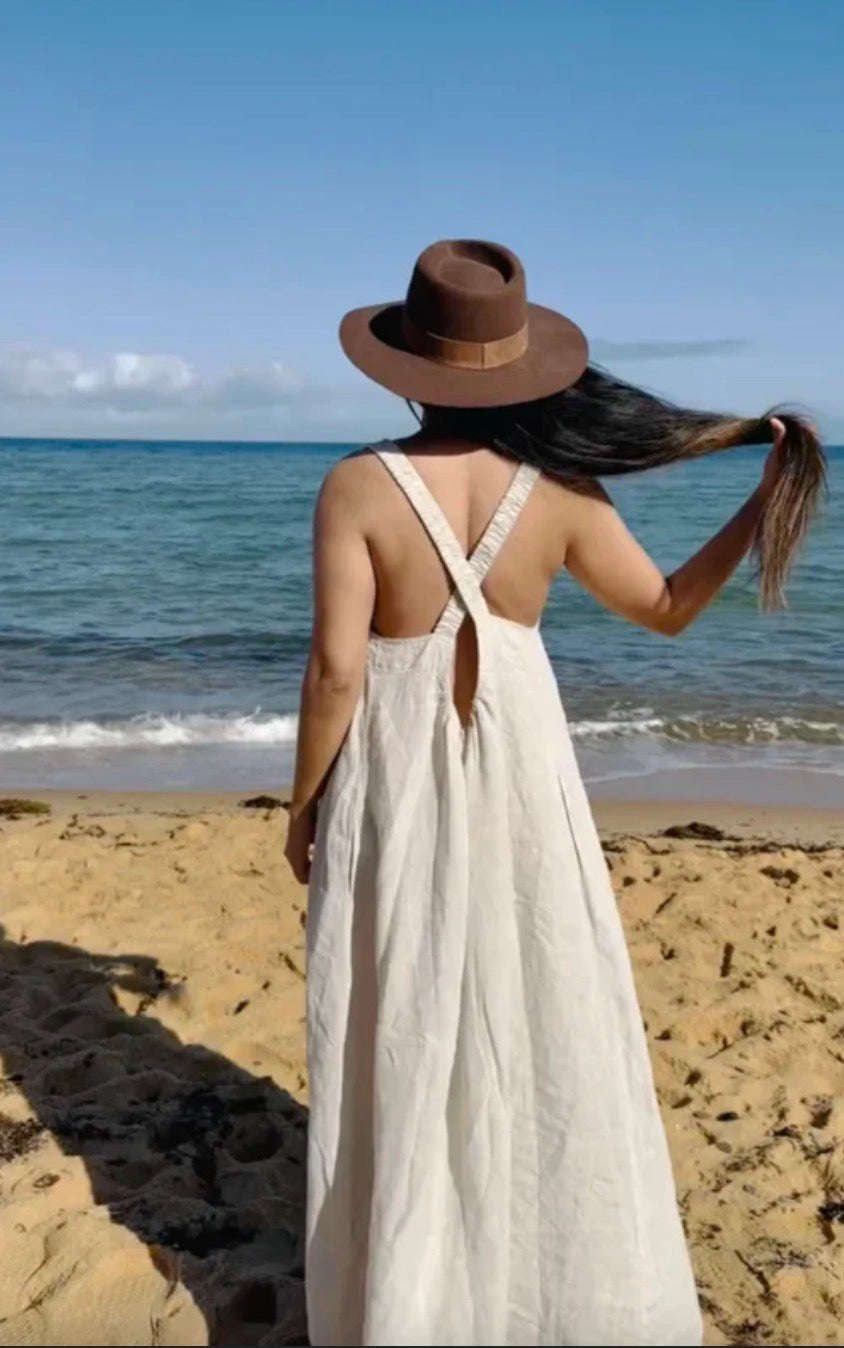 The Scarlett Full-Length Linen Dress is the perfect blend of elegance and daring style. Crafted from breathable, luxurious linen, this dress features a flattering, fitted silhouette enhanced by an elasticised crisscross back. The elasticised design ensures a comfortable fit that accommodates a variety of body shapes and sizes. With its side seam pockets for added practicality, this dress effortlessly combines sophistication with a touch of bold, modern flair. Ideal for both casual outings and special occasions, the Scarlett dress is as versatile as it is timeless.