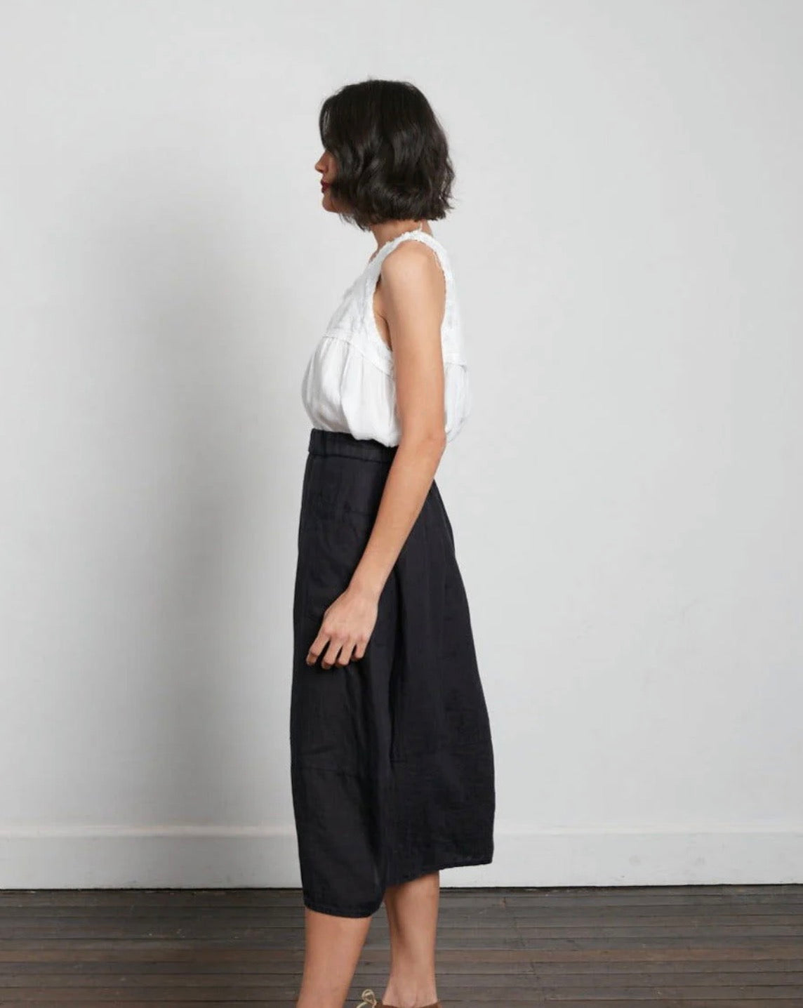 Our midi-length tulip skirt is made from light-weight linen and featured a flat front elasticated waistband for ultimate comfort. We love it with a tucked in t-shirt or blouse, trainers, chunky sandals or a boot for winter. This versatile piece is perfect for 12 months of the year.