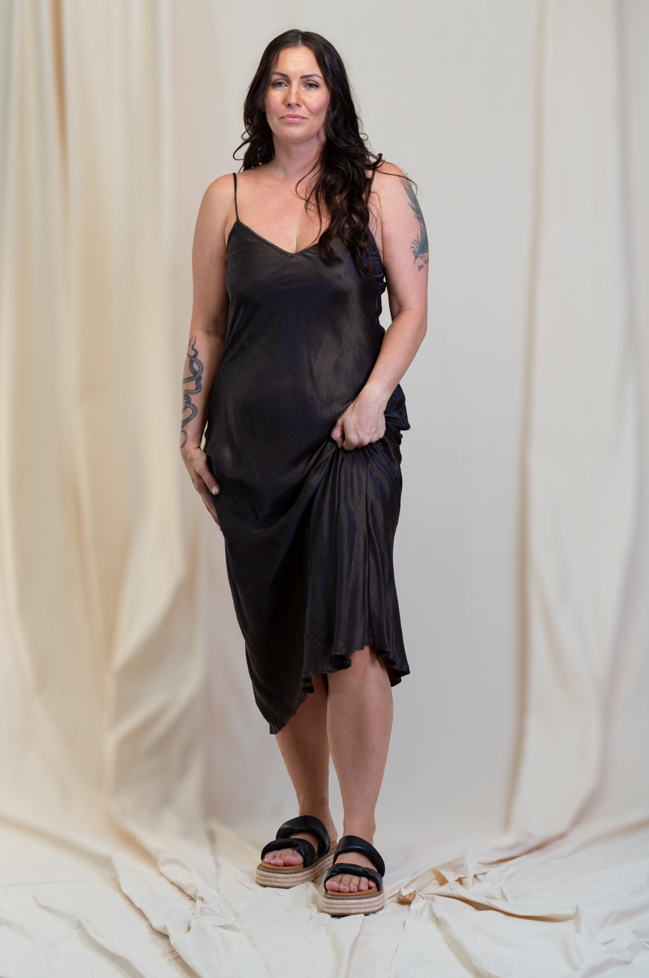 Our stunning pure silk slip dress from Otomo is the ultimate day-to-night essential, featuring adjustable straps and a flattering bias cut.