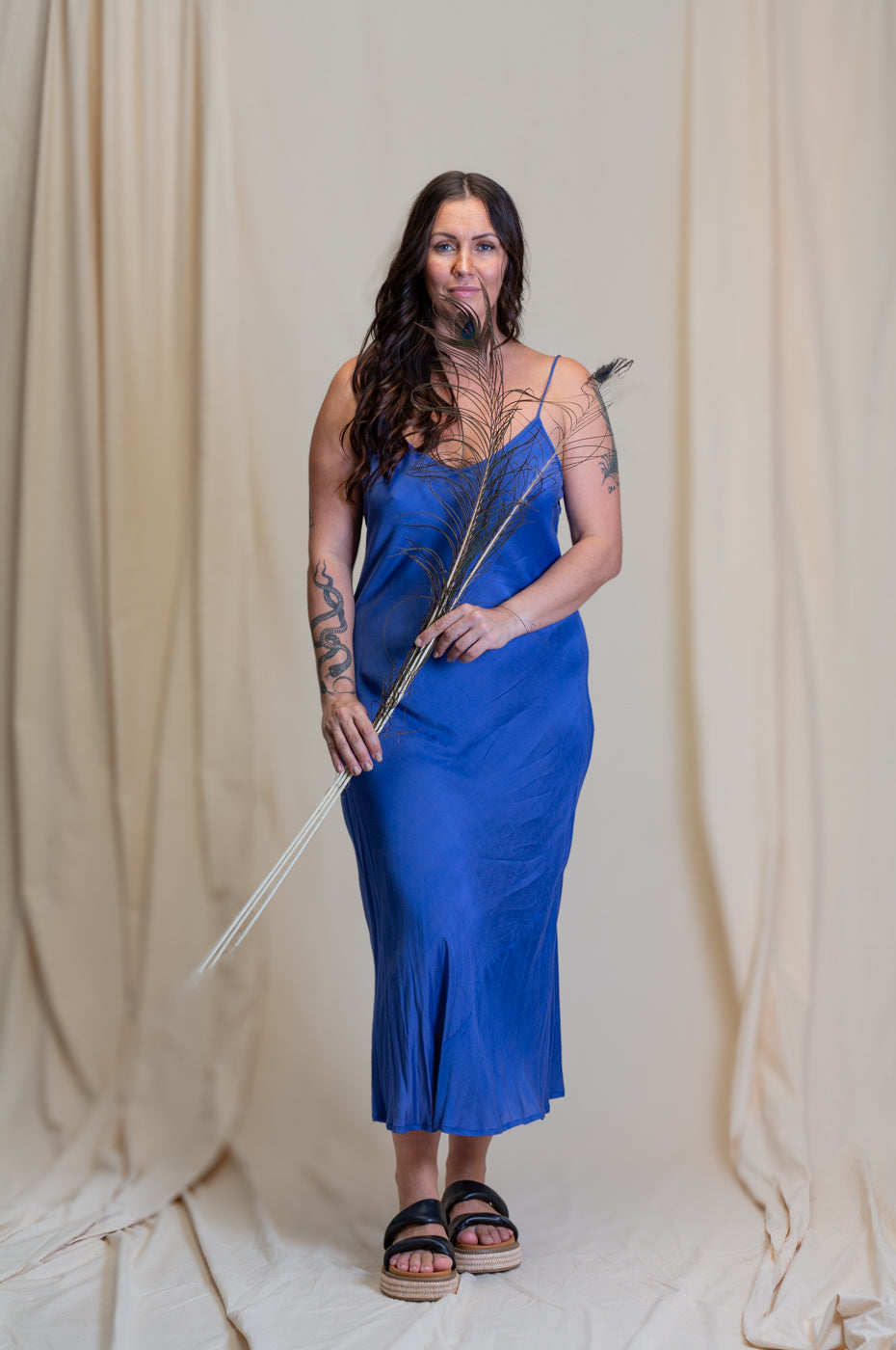 Our stunning pure silk slip dress from Otomo is the ultimate day-to-night essential, featuring adjustable straps and a flattering bias cut.