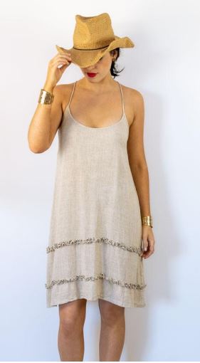 Adjustable straps that can also be worn crossed or halter.