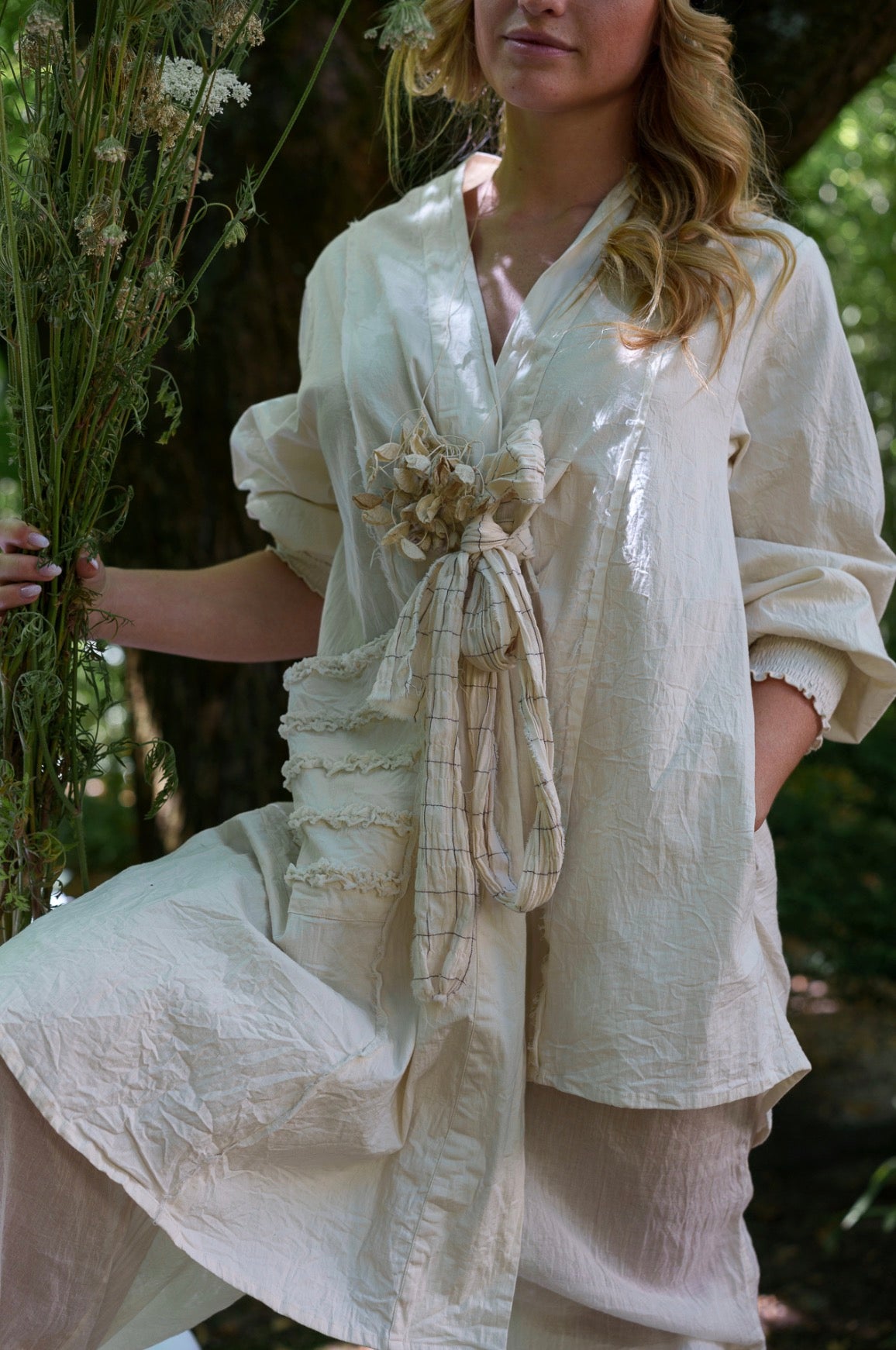 This unique piece of jewelry, handcrafted in France, embodies delicacy and elegance in its purest essence. Made from textured paper, carefully shaped and tinted with vegetable dyes, it evokes organic poetry and timeless charm. The delicate leaves, suspended on a fine wire, seem to dance lightly, recalling the fragility of dried flowers.