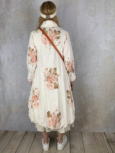 Malo is a magnificent summer coat, designed to combine lightness and elegance. The pretty details: Material 100% cotton gauze Two pockets on each side Ball shape Long, slightly puffed sleeves. Closed with a series of mother-of-pearl buttons Thin pink striped washerwoman to tie. Shawl collar
