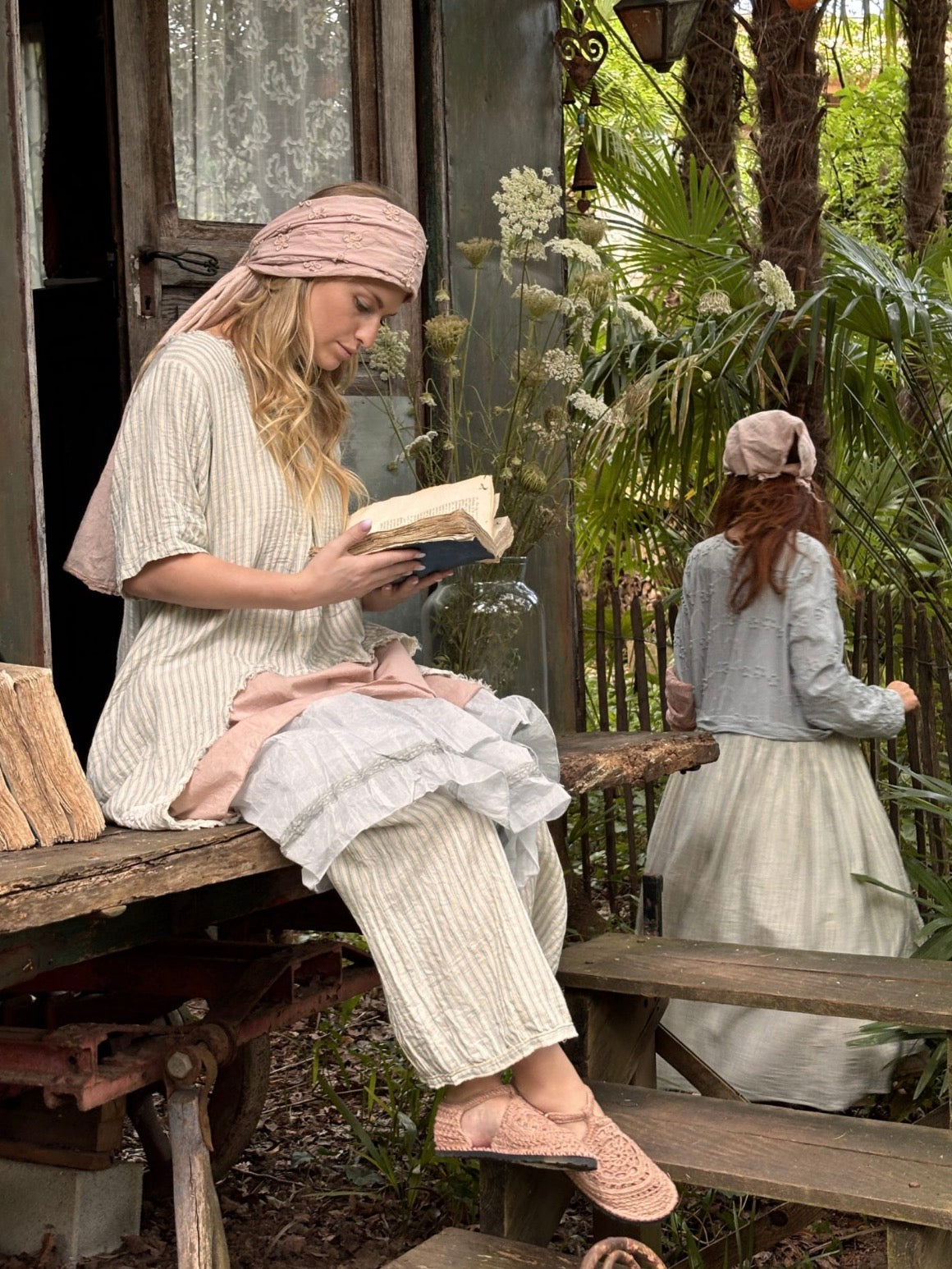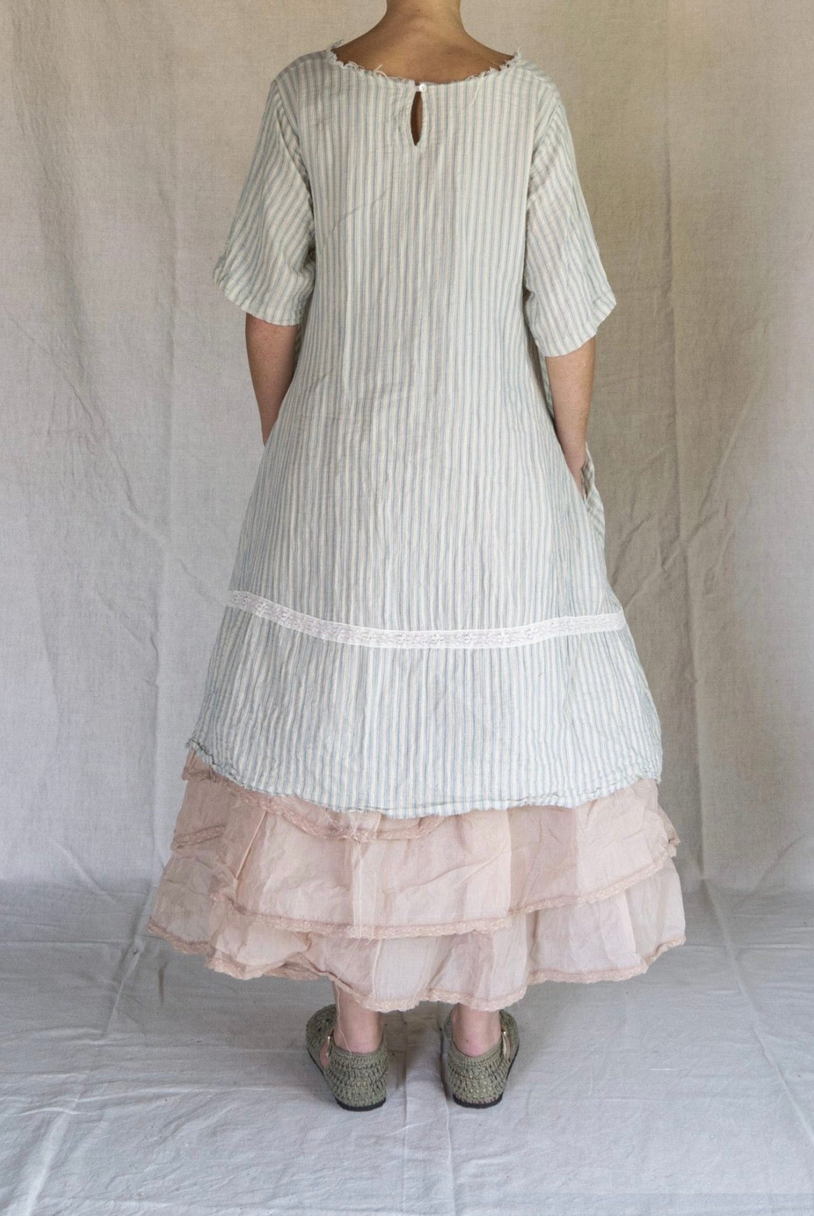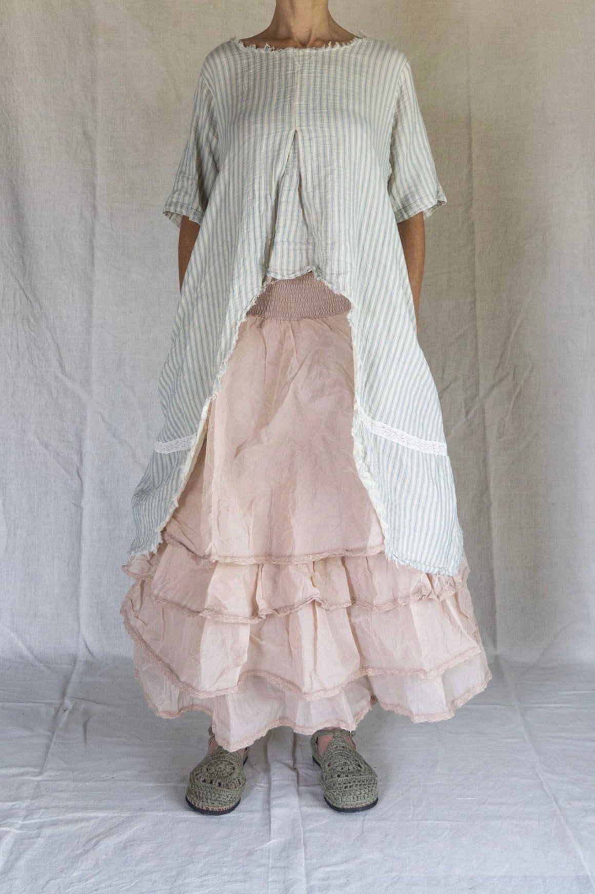 Succumb to the bohemian and romantic charm of our Paquerette tunic in cotton. It combines comfort and relaxed elegance, with delicate details and a flared, open-front shape that will appeal to lovers of bohemian fashion. The pretty details: The front has a slight flared effect with a central slit that subtly reveals the skirt underneath, providing movement and a fluid look. Flared collar and raw finish: The slightly frayed collar offers a natural touch Teardrop closure at the back with a small button. Two hidden pockets on each side. Cotton lace on the bottom. The back of the dress is slightly rounded to accentuate the airy and soft appearance of the outfit, ideal for a feminine and relaxed silhouette.