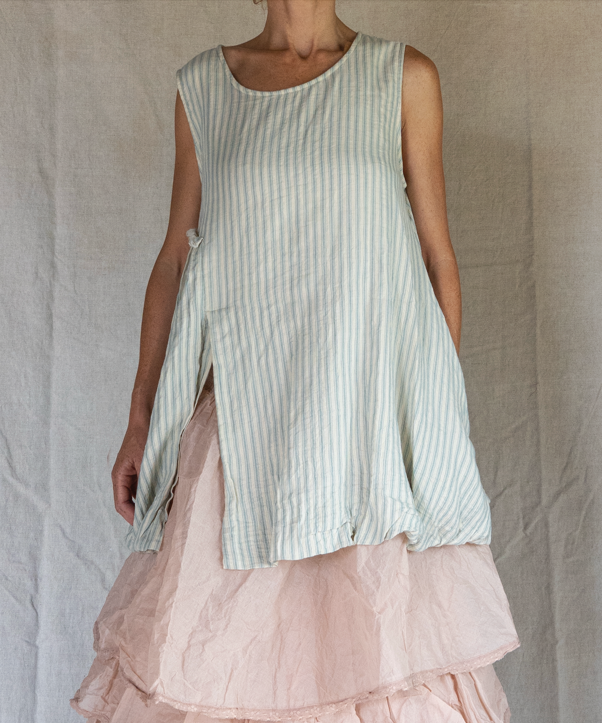 Combine comfort and minimalist elegance with the ACHILLE tunic, a key piece for a modern bohemian look this summer. Designed in an ultra-light oversized fit, this checked tunic offers a simple yet sophisticated look, ideal for sunny days. The pretty details: Fluid and airy fabric: Made from a fabric (95% cotton, 5% lycra) this tunic exudes softness and comfort Asymmetrical cut: The A-line cut with subtle pleated details gives it volume, offering fluid movement and a flattering silhouette. Square neckline: The open, scooped neckline brings a modern and minimalist note, Side Slits: Slight openings on the sides at the front and back ensure freedom of movement while providing an elegant touch. With its discreet check print, this versatile tunic goes perfectly with long bohemian skirts and loose pants. Wear it on your summer getaways or layer it for a shabby look.