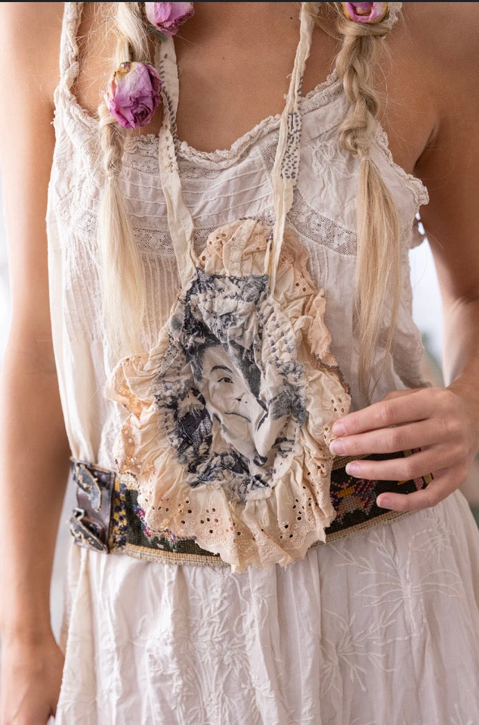 Celebrate artistry and individuality with the Frida Tehuana Jabot by Magnolia Pearl. This one-of-a-kind piece combines timeless craftsmanship with an homage to the iconic Frida Kahlo, making it a true wearable work of art.