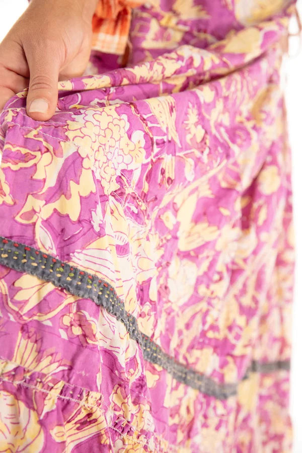 Watermelon lemonade spin, a barefoot skirt to twirl in. This Nepali Peasant Skirt hitches a ride through different eras to arrive right on time.