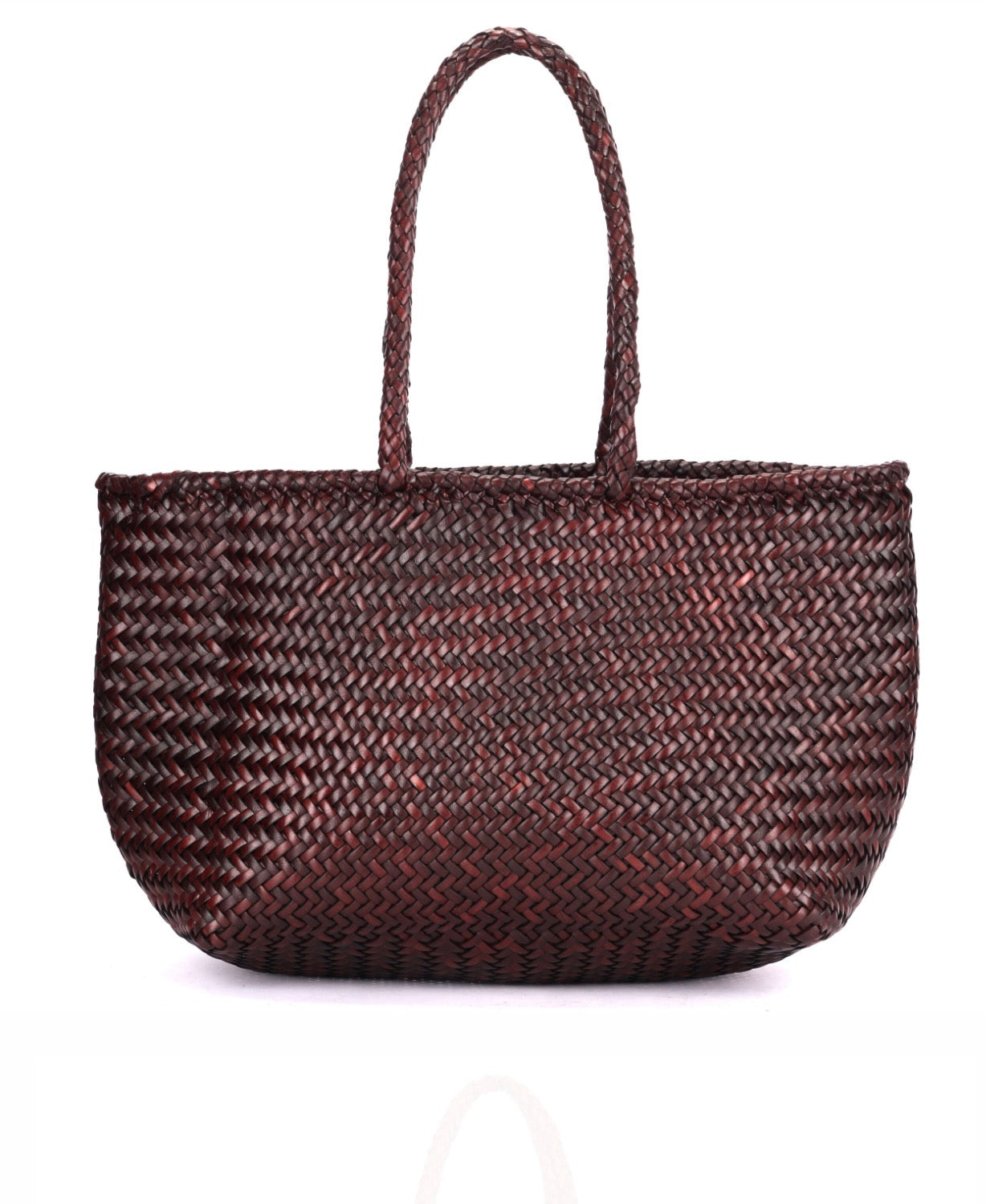 Handwoven by skilled artisans, this spacious bag features a classic basket-weave design that brings timeless elegance to your daily routine.
