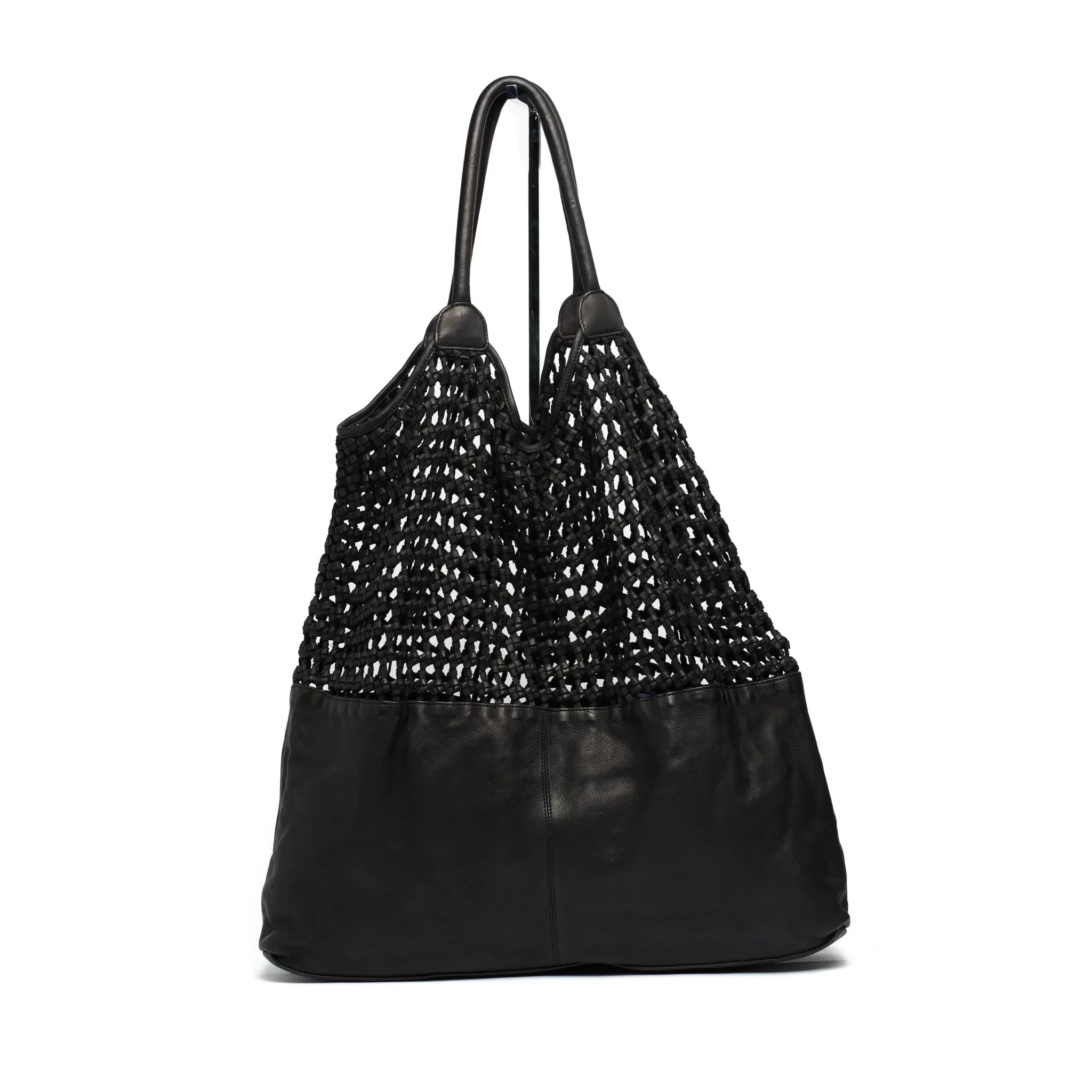 - Oversized leather shopper bag.