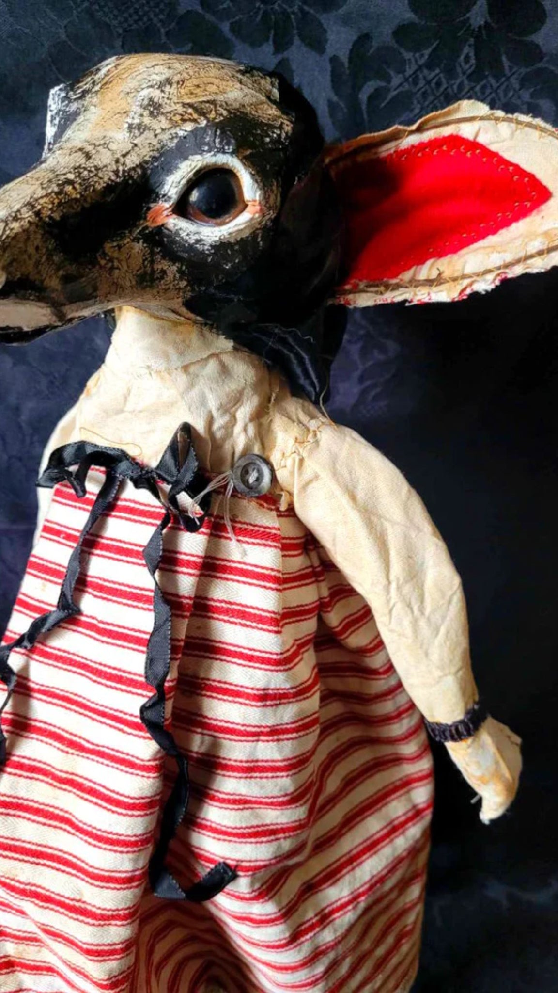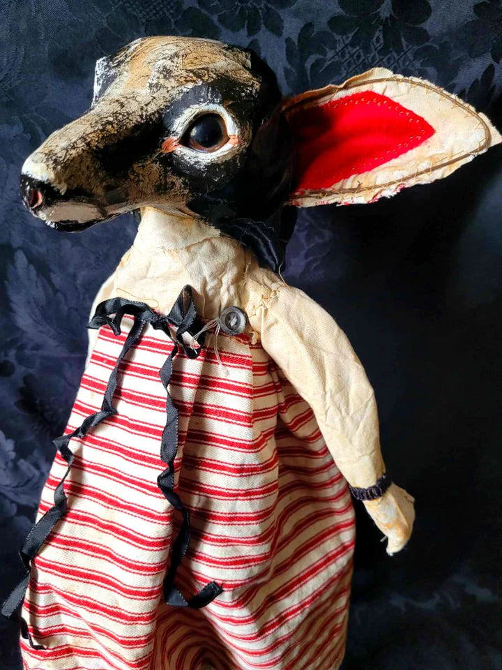 SANSHA is a sweet black fox in red ticking and stains.