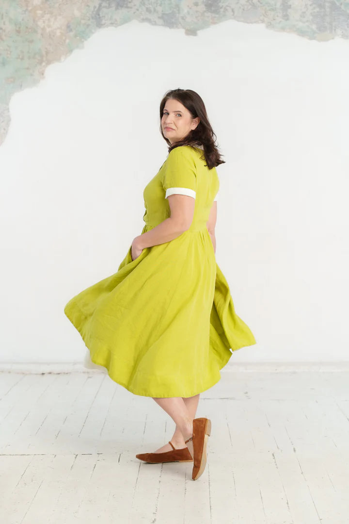 If you imagine a dress you could wear for any occasion with only one choice left to make - matching the right pair of shoes - it would be a classic cut linen Son de Flor dress. Made of soft linen, our Classic Dress with Peter Pan collar is a complete outfit and is sure to become a wardrobe's darling. The full skirt falls in a flattering A-line shape, has a concealed side zip, two side seam pockets and thoughtful white inside finishing. A-line romantic skirt is an invite for a nostalgic dance. A dance that is full of history. May this dress brings to life your lovely dreams and each time wearing brings a fairy tale with a happy ending!