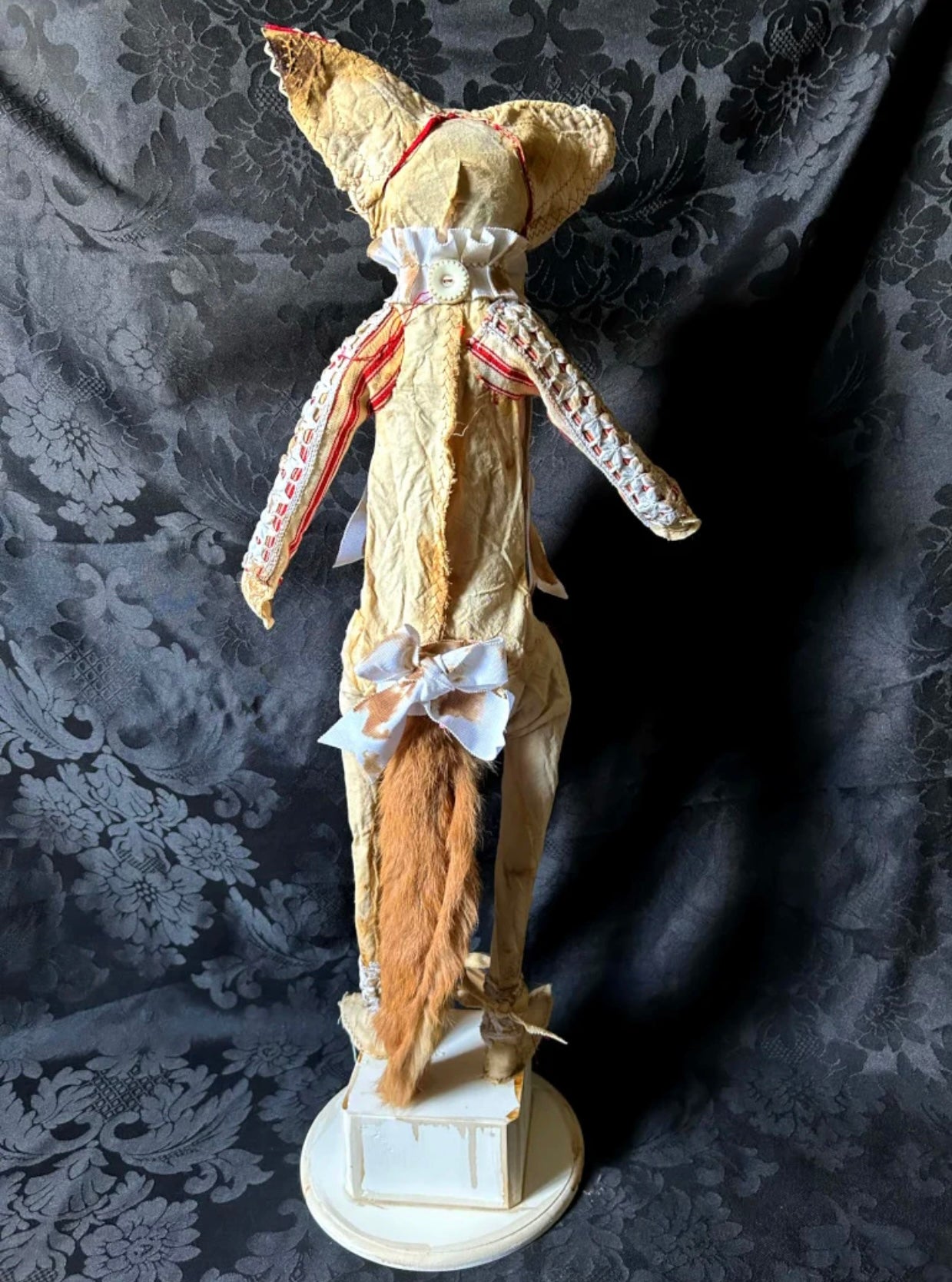 OPKINNS is a sweet young fox in red ticking and antique fur.