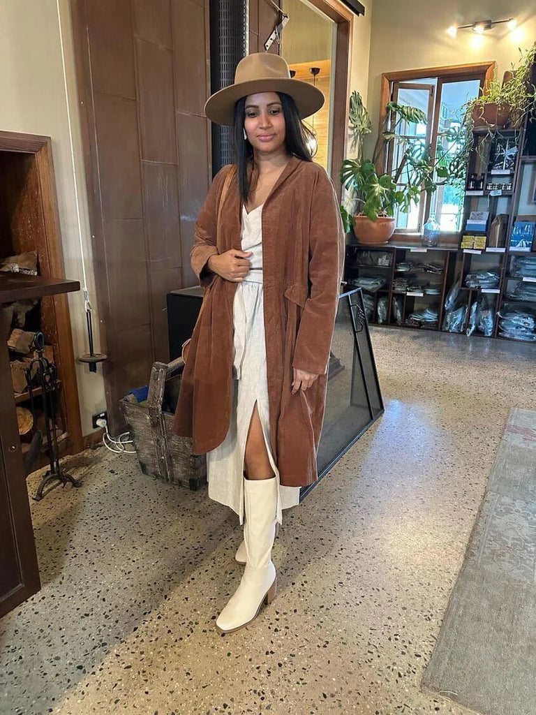This gorgeous cotton velvet coat will become a firm favourite in your wardrobe making every outfit look superb. This beauty looks as equally divine over skirts & dress as it does over jeans and pants.
